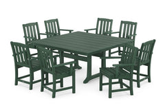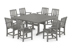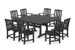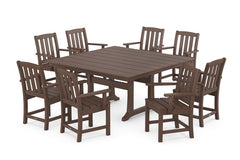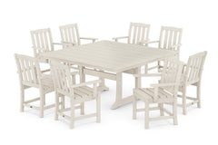Trex Polywood Outdoor Furniture Polymer Cape Cod 9 Piece Square Table with 8 Cape Cod Dining Arm Chairs in White