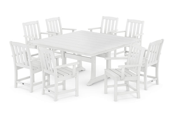 CAPE COD SQUARE FARMHOUSE 9 PIECE DINING SET - 59" Square Dining Table with Trestle Base and 8 Cape Cod Dining Chairs