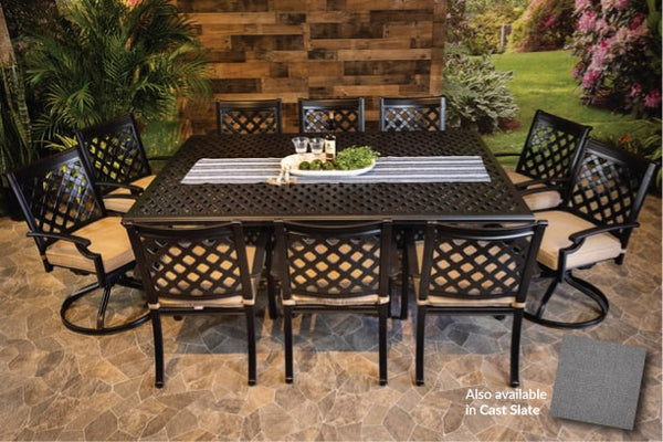 CHATEAU 11 PIECE DINING SET - 60" x 84" Weave Dining Table, 6 Chairs and 4 Swivel Chairs