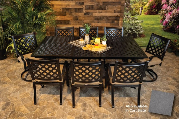 CHATEAU 9 PIECE DINING SET - 48" x 84"-127" Extension Weave Dining Table, 6 Chairs and 2 Swivel Chairs