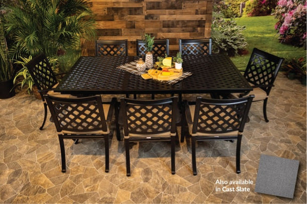 DWL Chateau Aluminum Outdoor Dining Weave Extension Table with 8 Chairs and Sunbrella Cushions in Cast Slate 40434