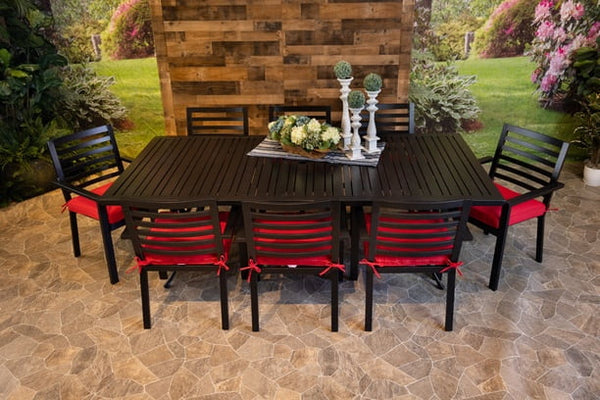 Glenhaven Stone Harbor Aluminum Patio Dining 46x93 Stone Harbor Table with 8 Dining Chairs
